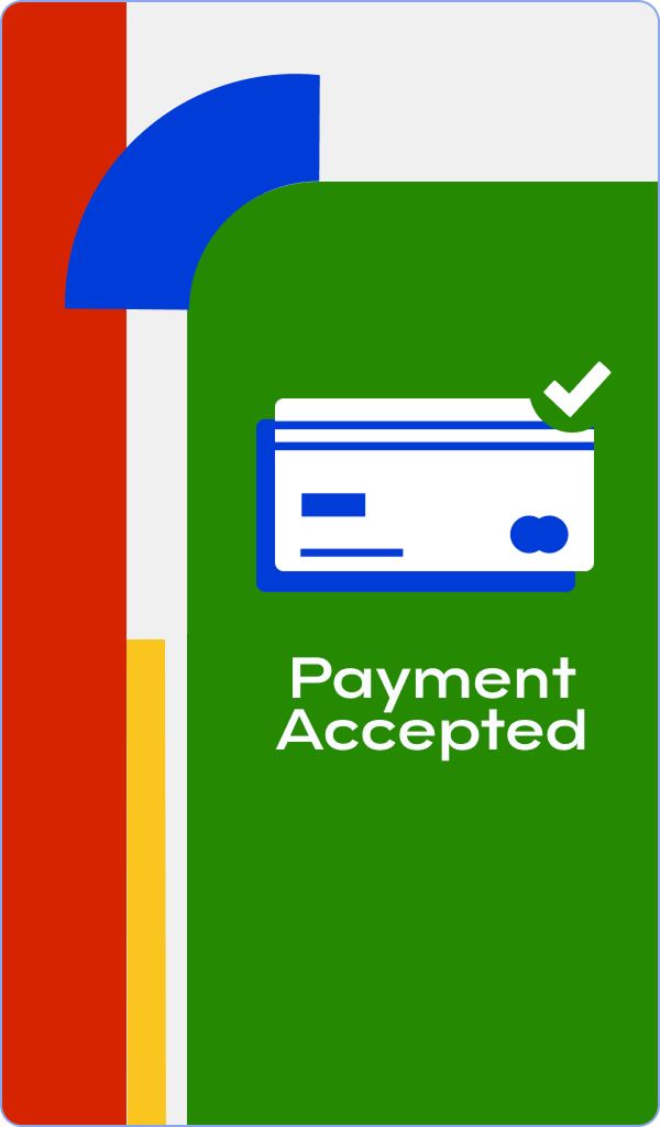 Bold primary colors (yellow/red/blue) for nostalgia and appetite stimulation